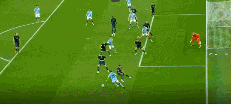 第57分钟,福登助攻,哈兰德头槌破门,曼城1-0
