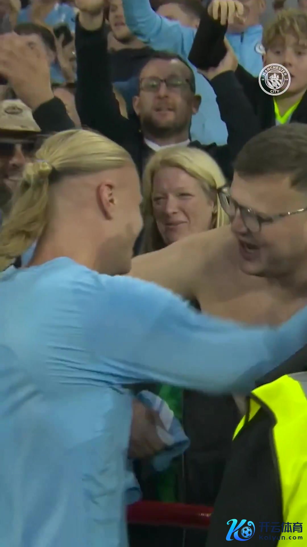 曼城官方社媒晒出视频,哈兰德赛后将球衣拯救给又名球迷,后者与哈兰德拥抱,并亲吻了他的面颊。