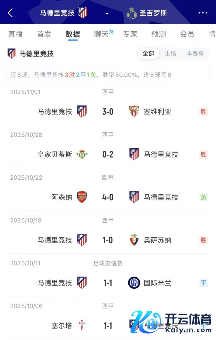 欧冠前3轮,马竞1胜2负,上一轮0-4惨败阿森纳;圣吉罗斯1胜1负,上一轮上一轮0-4惨败海外米兰!
