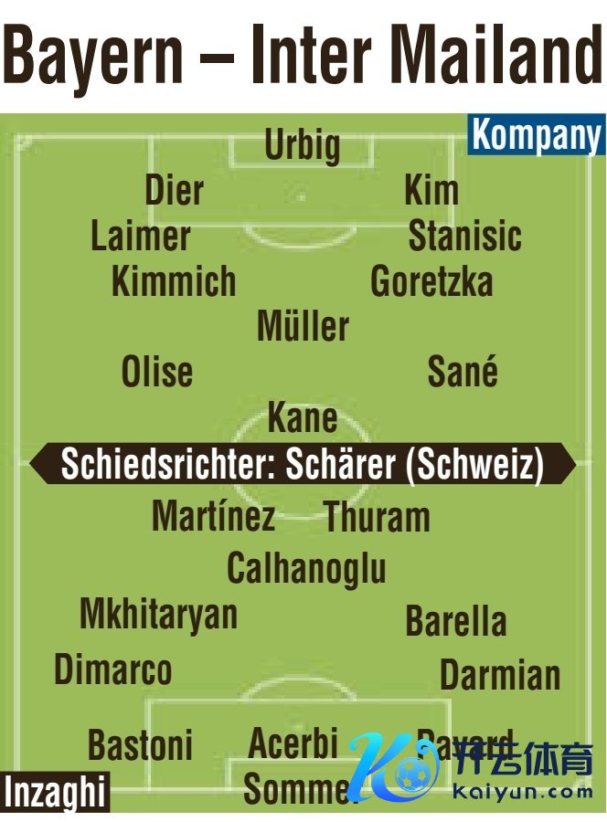 4月8日讯 北京时分来日凌晨,拜仁将在欧冠1/4决赛首回合比赛中主场对阵国米。德国媒体《图片报》瞻望了两队的首发气势,凯恩、萨内pk劳塔罗、图拉姆。