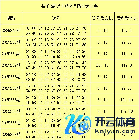 福彩欢娱8第2025258期开出奖号:01 05 10 12 16 23 25 28 29 36 40 46 51 55 58 64 66 71 76 80,其中奖号质合比为5:15体育集锦,奖号余数质合比为8:12。