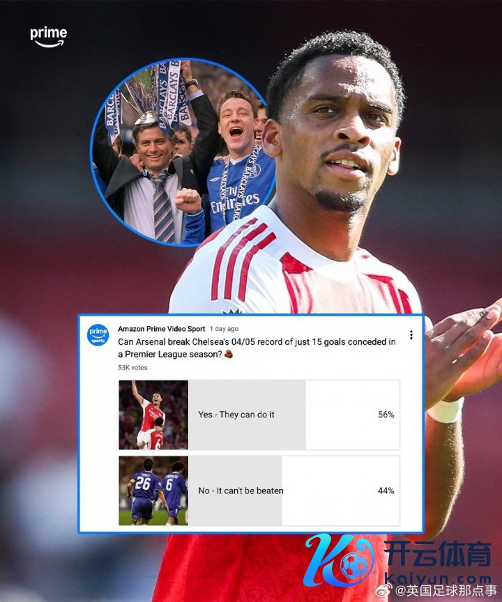 Amazon作念个了造访,向上5万东说念主投票,56%的网友以为阿森纳能破切尔西的记载🤔