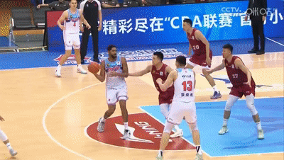 李炎哲前脚抛完,范子铭还不长记性,第二节新疆队起势阶段,范子铭持续用雷同的花样被艾孜麦提迎面来了一个抛投。