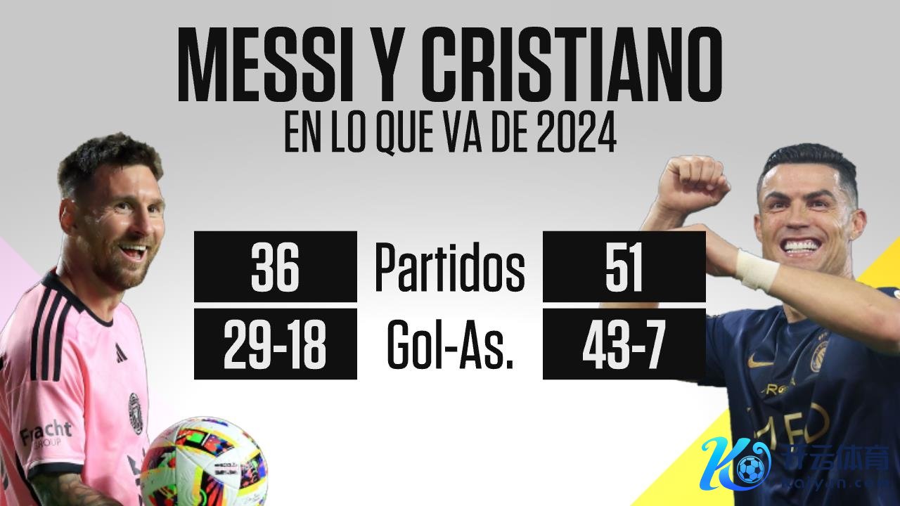 梅西在2024年共出战36场比赛,打进29球并有18次助攻;C罗在2024年共出战51场比赛,打进43球并有7次助攻。