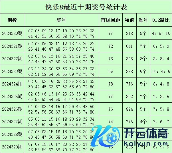 福彩餍足8第2024329期开奖追思:07 09 15 16 17 20 22 25 37 39 48 58 59 67 69 70 72 74 79 80,其中奖号首尾间距为73体育集锦,和值为883,012路比为6:9:5,包含6组同尾号码:20-70-80、22-72、15-25、07-17-37-67、48-58、09-39-59-69-79,开出7个重号:15、16、39、58、69、72、80。