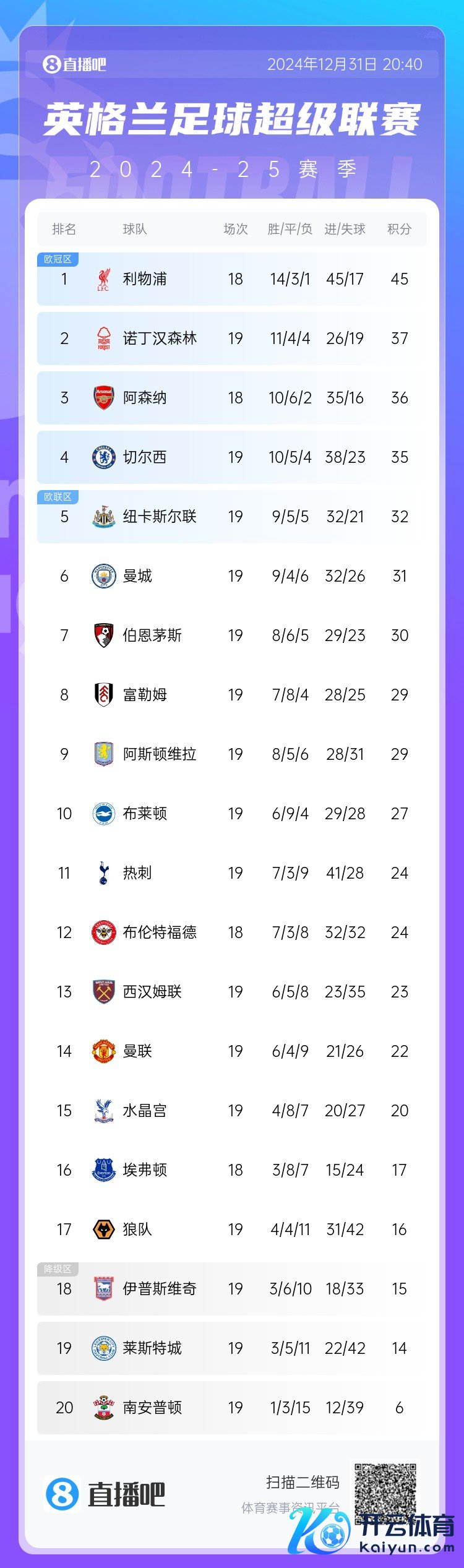 直播吧12月31日讯英超创立以来,曼联在弗格森抓教的21年里最低名次是英超第三位,弗格森退休后,曼联在英超的最低名次束缚刷新,上赛季的第八是球队进入英超以来的最低名次。