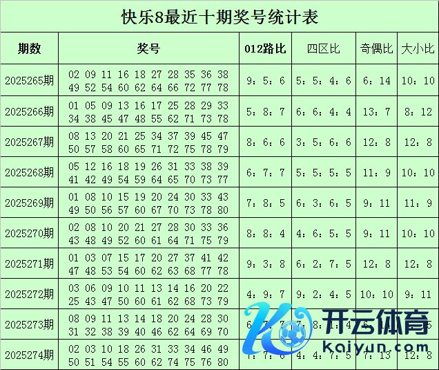 福彩欢乐8第2025274期开奖回顾:02 03 10 18 26 31 33 34 46 49 50 51 54 55 60 62 74 75 76 80,其中奖号012路比为7:7:6,四区比为4:4:7:5体育录像/图片,奇偶比为7:13,大小比为12:8。