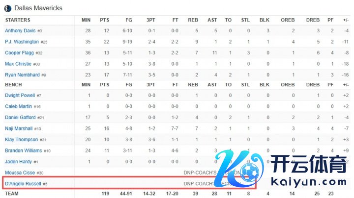此役,独行侠后卫德安吉洛·拉塞尔被DNP,无缘濒临旧主湖东谈主。