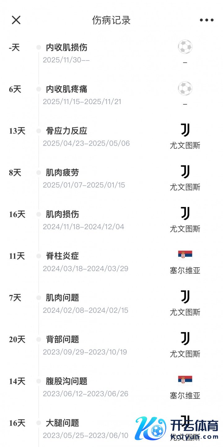 12月01日讯 尤文臣方公布弗拉霍维奇伤情,他的左侧长收肌肌肉肌腱衔接处存在高等别挫伤。迪马济奥示意,弗拉霍维奇将至少缺席2-3个月,如若手术,缺席技艺可能更久。