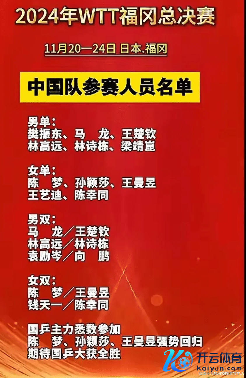 本年的WTT福冈总决赛可谓是星光熠熠,官方照旧公布了参赛名单,天下名次前十六的男、女单球员和前8的男、女双球员皆聚一堂。而我们国乒更是派出了14位实力战将出征,声威号称豪华。