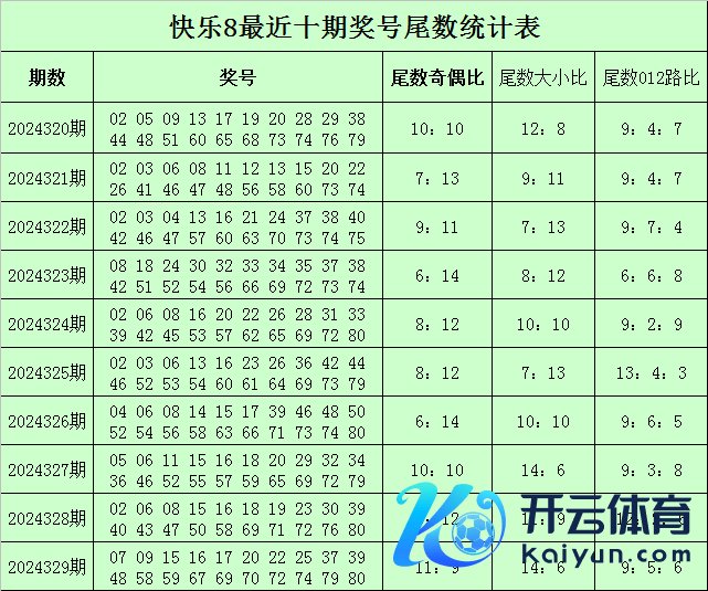 福彩欢跃8第2024329期开奖转头:07 09 15 16 17 20 22 25 37 39 48 58 59 67 69 70 72 74 79 80,其中奖号余数012路比为9:5:6体育录像/图片,余数大小比为14:6,奇偶比为11:9。