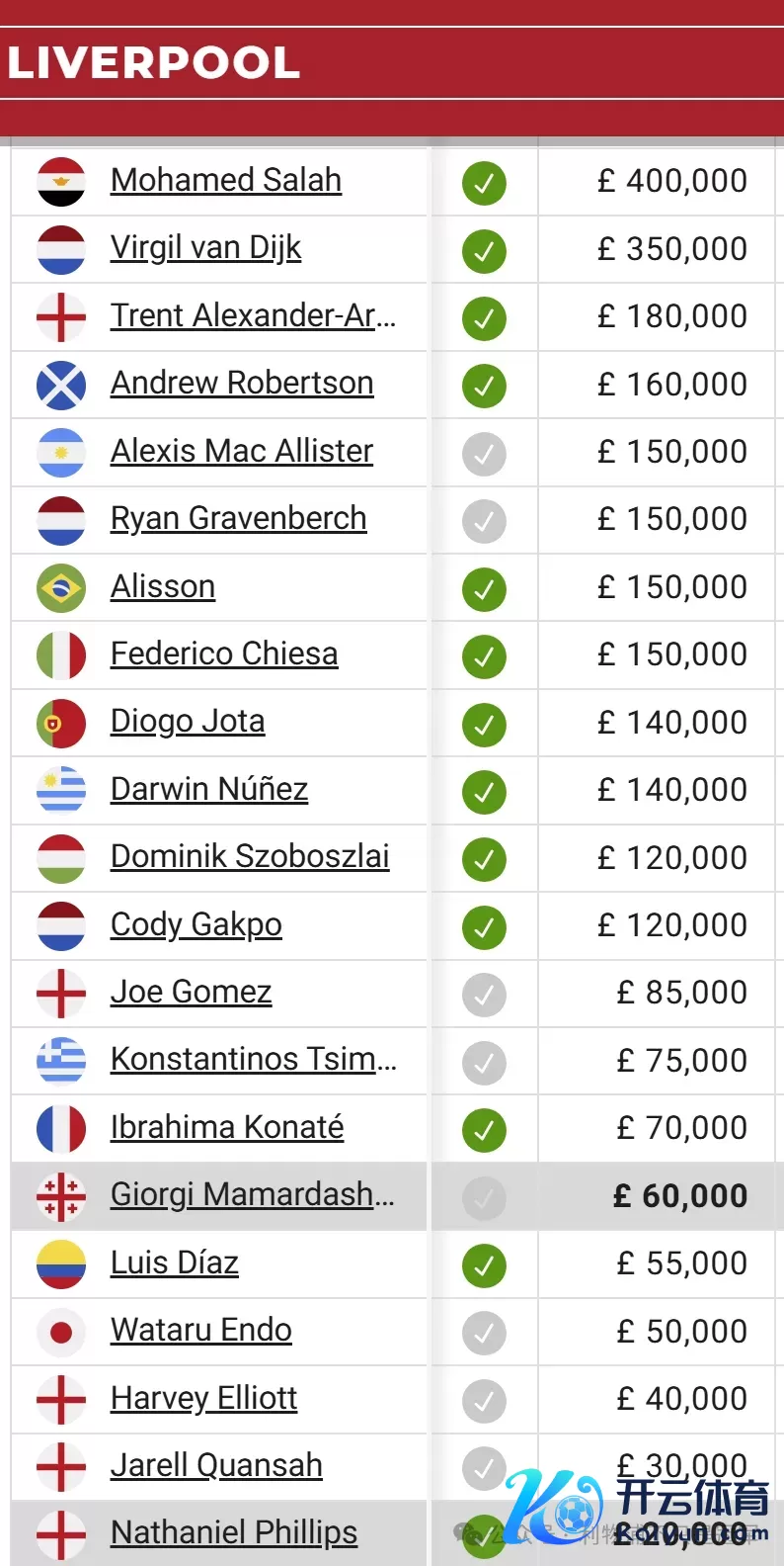 --阿诺德:榜单上是18万英镑周薪,本色上在2021年续约后,工资是20万英镑,他的周薪属于俱乐部第二档,而第一档是萨拉赫、范迪克、阿利森。