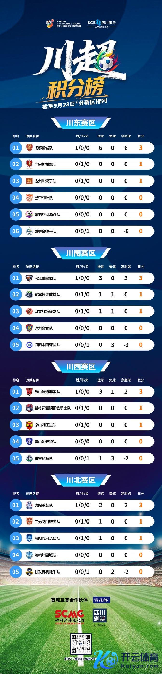 本轮赛事是川超分区赛程度的一部分体育赛事直播,适度10月6日,川东赛区第三轮部分场次战罢。现在各队积分情况尚未公布,后续四川省足协及巨擘体育媒体将公示最新积分榜及赛事发达。