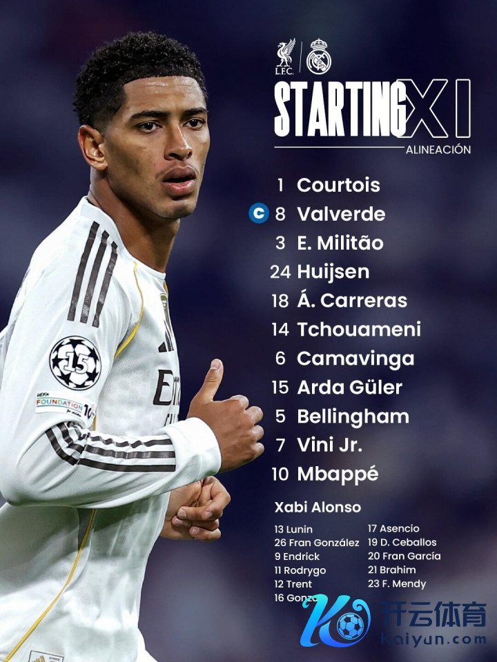 欧冠第4轮,皇马客战利物浦首发11东说念主