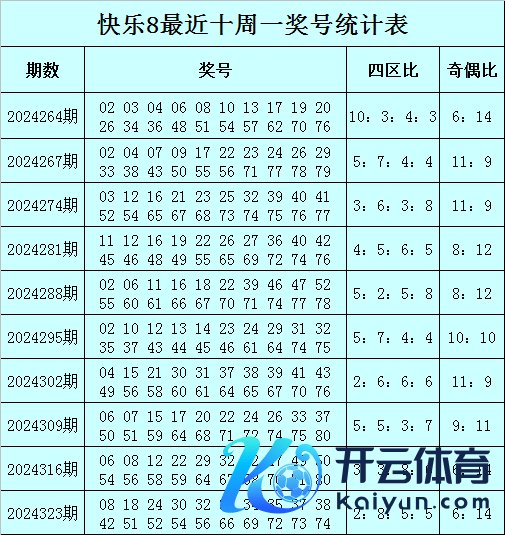 福彩欢然8第2024323期(上周一)开奖精良:08 18 24 30 32 33 34 35 37 38 42 51 52 54 56 66 69 72 73 74,其中奖号四区比为2:8:5:5,奇偶比为6:14。