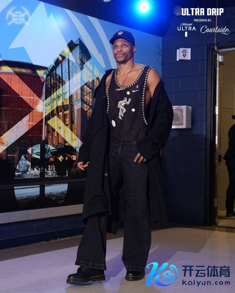 潮范儿全齐😎!威少穿玄色背心&玄色风衣半露肩帅气到场体育赛事直播